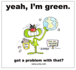 Jurdy Green cartoon saying: "yeah, I'm green...got a problem